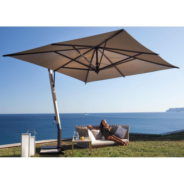 Experience ultimate shade and style with the FIM P-Series 10x10 Foot Square Giant Cantilever Umbrella. This giant umbrella provides a wide, 100 square foot coverage with effortless adjustment and rotation. Perfect for any outdoor setting, its durable design and sleek look will elevate any space.