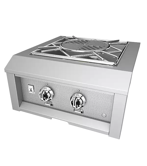 The Hestan power burner combines high-performance outdoor cooking power with stunning design. Perfect for crab boils, it accommodates extra-large pots and delivers an extra-powerful flame with dual burners and a combined 70,000 BTUs. The sealed burner bowl with drain protects from boil overs and spills, while the stainless steel top cover provides protection from the elements.