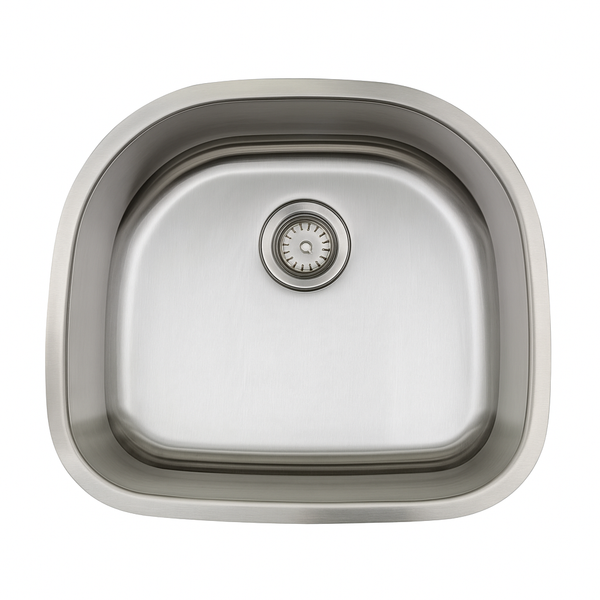 The E-Stainless 18 Gauge Large Single "D" Shape Bowl measures 24 x 21 inches with a 9-inch bowl depth, crafted from durable 18-gauge stainless steel for lasting strength and reliability. Its unique "D" shape design offers a spacious and stylish workspace, perfect for a variety of kitchen tasks. Upgrade your kitchen with this practical and elegant sink that combines functionality with a sleek, modern look.