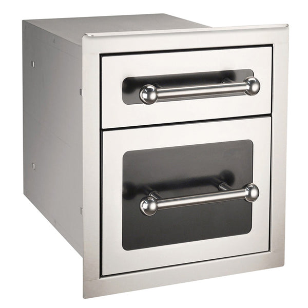 Featuring heavy-duty handles with cast stainless steel mounts, these 304stainless steel doors and drawers are designed to close flush with the frame using a strong magnetic latch. Flush Mounted Doors and Drawers are filled with polyurethane foam for insulation and a solid feel. A continuous rain guard protects from water getting into your custom enclosure. In addition, most 5-Series doors and drawers now have a soft-close feature for smooth transition while opening and closing. Available in a variation of door and drawer configurations and sizes. With so many options there is a combination available to meet any outdoor kitchen storage need. Pantry sealed and gasketed Door/Drawer combos feature self-closing, magnetic seal drawers.